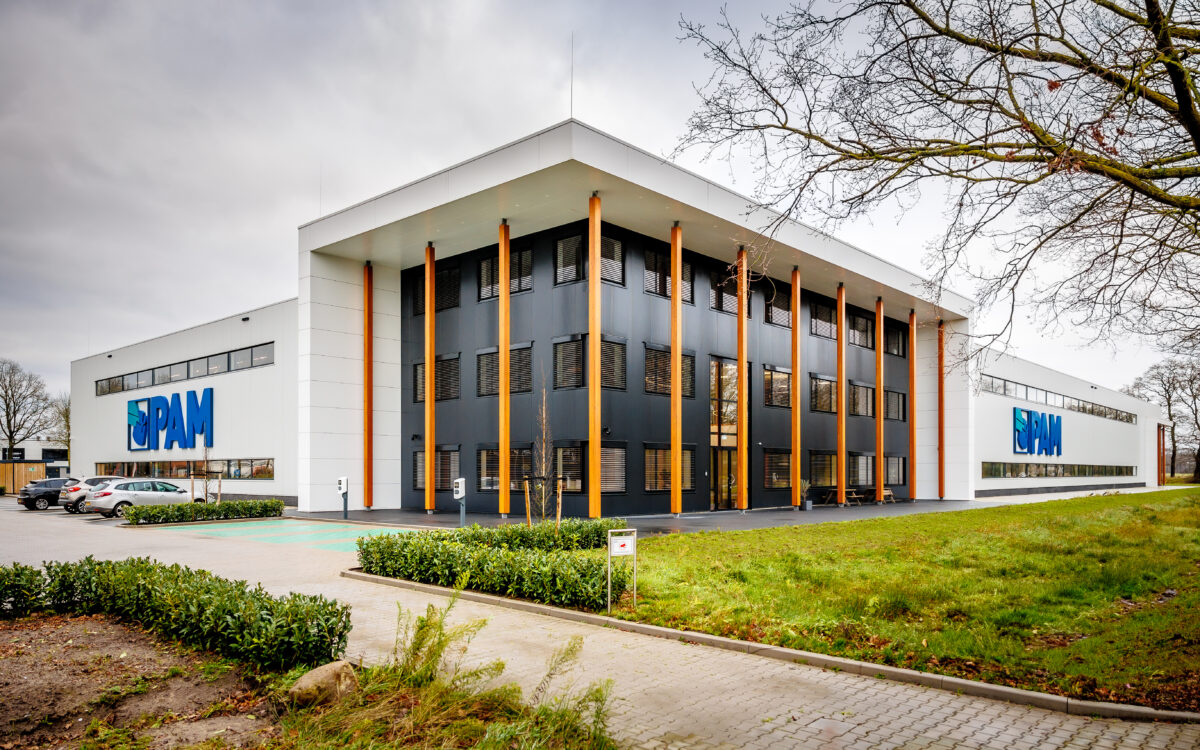 Voor PAM Galerij- en Balkonverhoging is in Almelo een nieuw, duurzaam bedrijfspand gerealiseerd. PAM was uit haar bestaande locatie gegroeid en had behoefte aan een toekomstbestendige werkomgeving die ruimte biedt voor verdere ontwikkeling. In samenwerking met vastgoedeigenaar LAB Beheer werd een nieuwbouwtraject gestart dat resulteerde in een modern pand met een GPR-score van 8.0.
